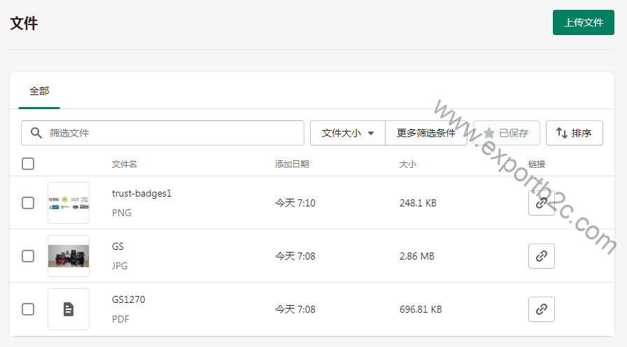上传完图片或者文档之后,你可以复制右侧的URL链接,插入到你想要放的页面即可。点击下方的‘详细了解文件’便可以查看Shopify对图片或视频文件大小,分辨率,格式等要求。