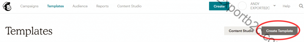 1)点击Mailchimp导航栏‘Templates’,之后选择‘Create Template’